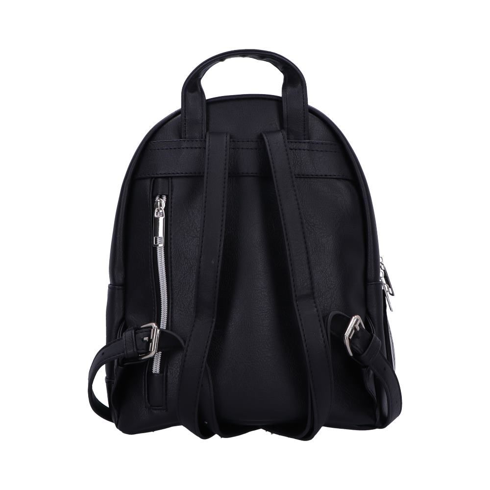 Functional and eye-catching, this black backpack features a popular Ouija board design. Go for the gothic look and carry your witchy wares in style!