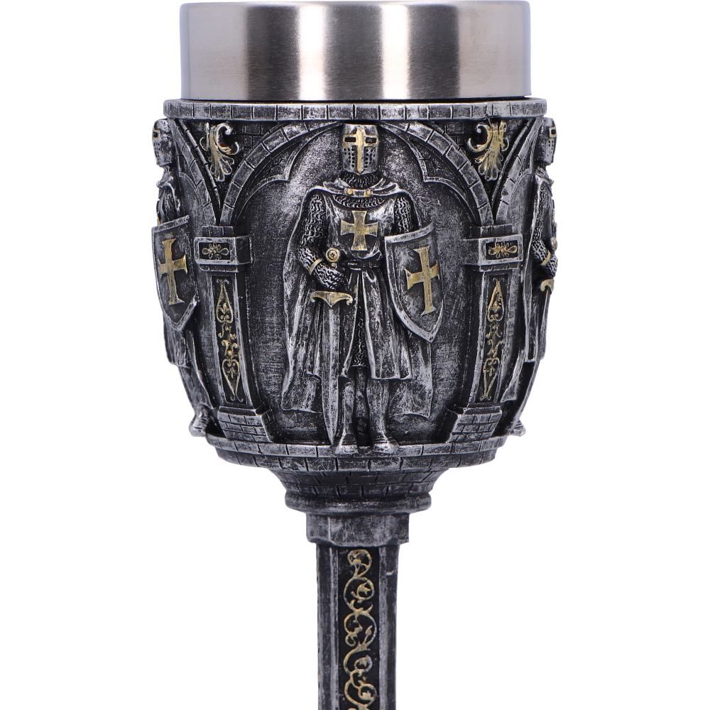 Metallic-look goblet with medieval knight design