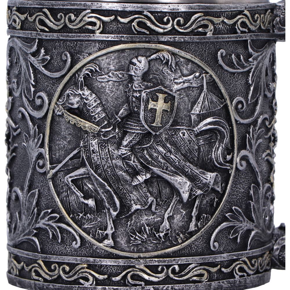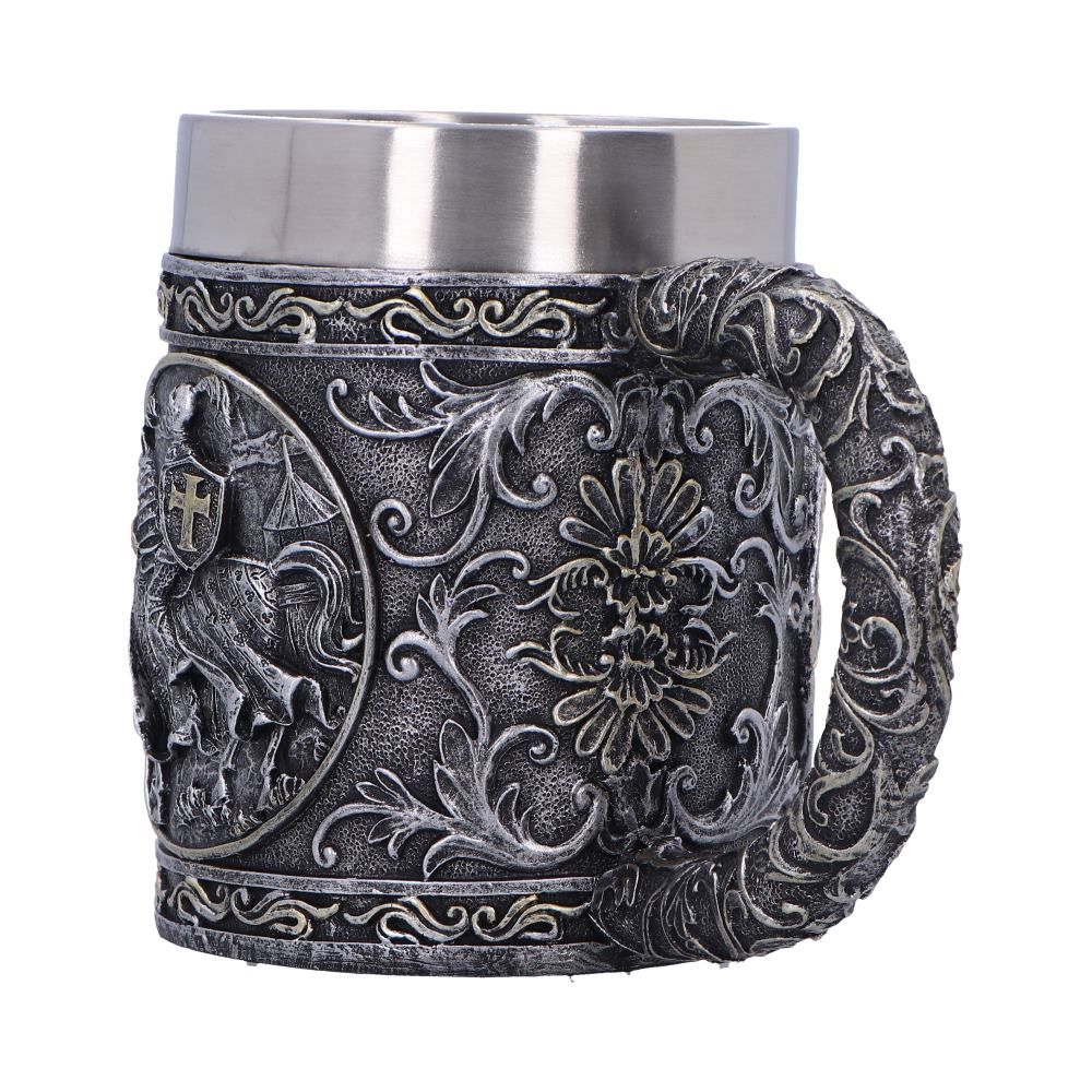 • Medieval inspired resin tankard with detailed heraldic symbolism.