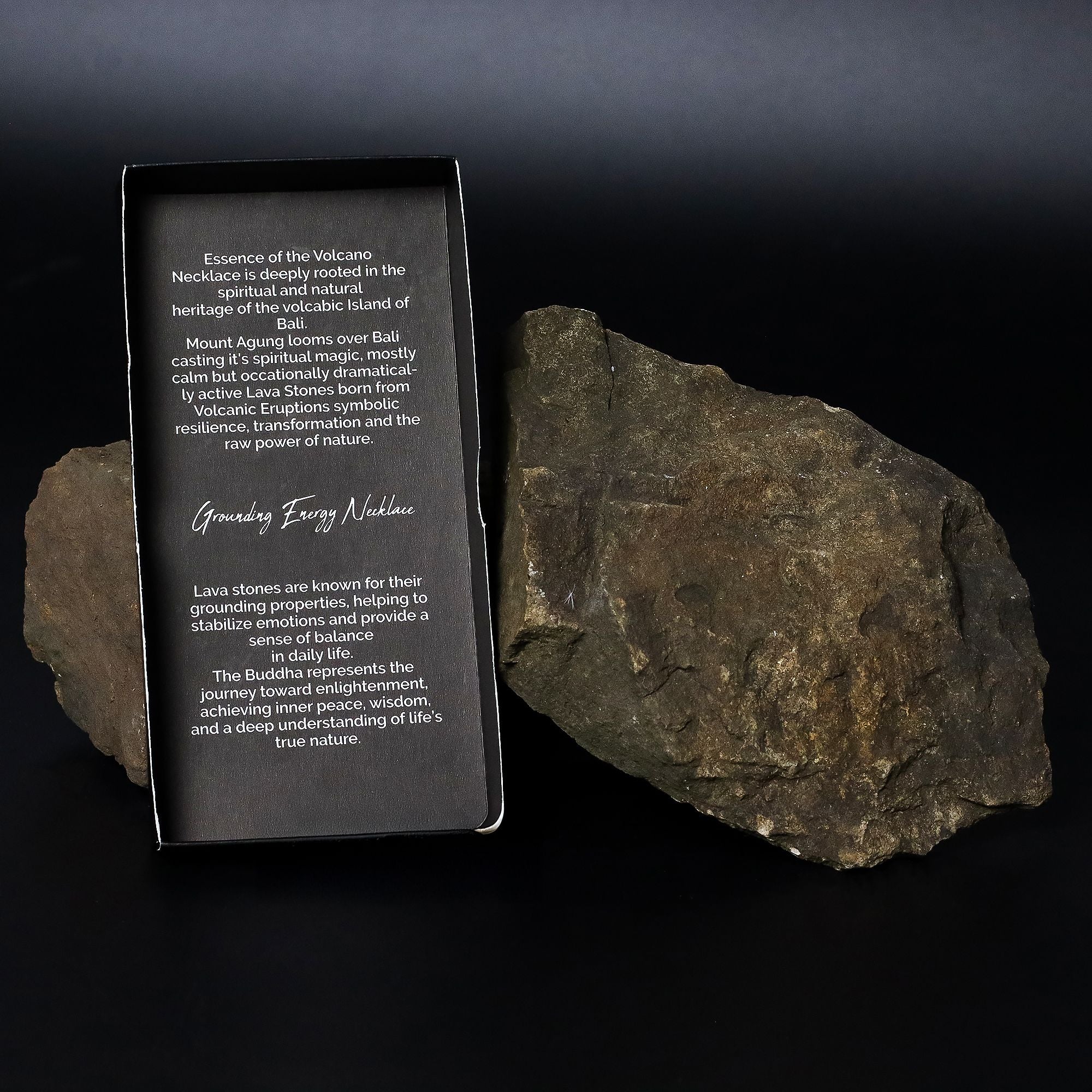 Handmade in Bali, this striking necklace is crafted from natural lava stone – known for its grounding, calming energy. A delicate silver Buddha charm and soft tassel add a spiritual touch, making it as meaningful as it is beautiful.