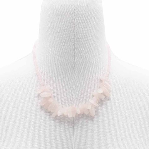 This necklace is a true embodiment of elegance and natural beauty. Slender Rose Quartz gemstones exude a delicate, blushing pink hue, radiating a sense of serenity and love.