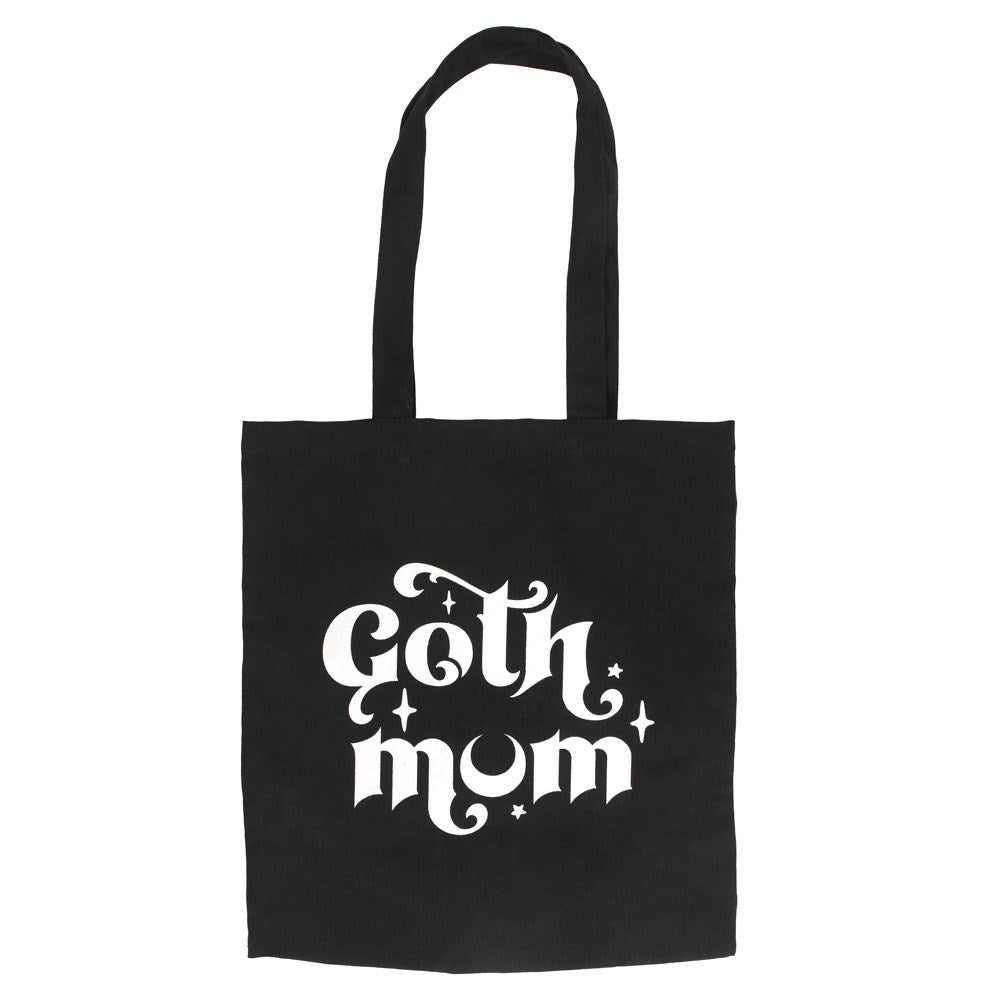 Carry your mum essentials everywhere you go with this black Polycotton canvas tote bag with spooky 'Goth Mum' text.