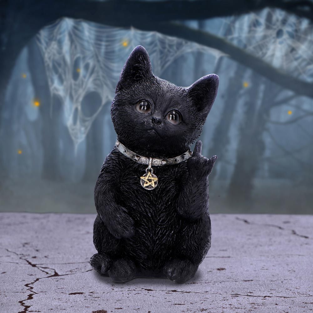 Metallicat is ready to rock with a spiked collar and rock horns raised! Designed by Nemesis Now.