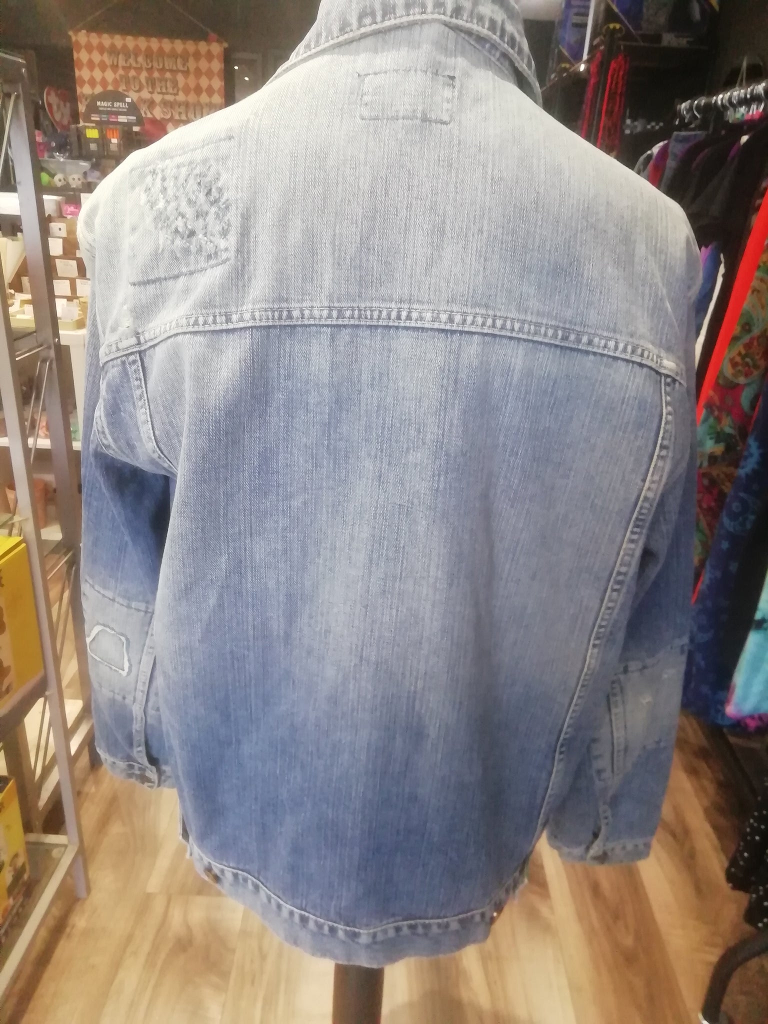 Ladies Distressed Denim Jacket, Large