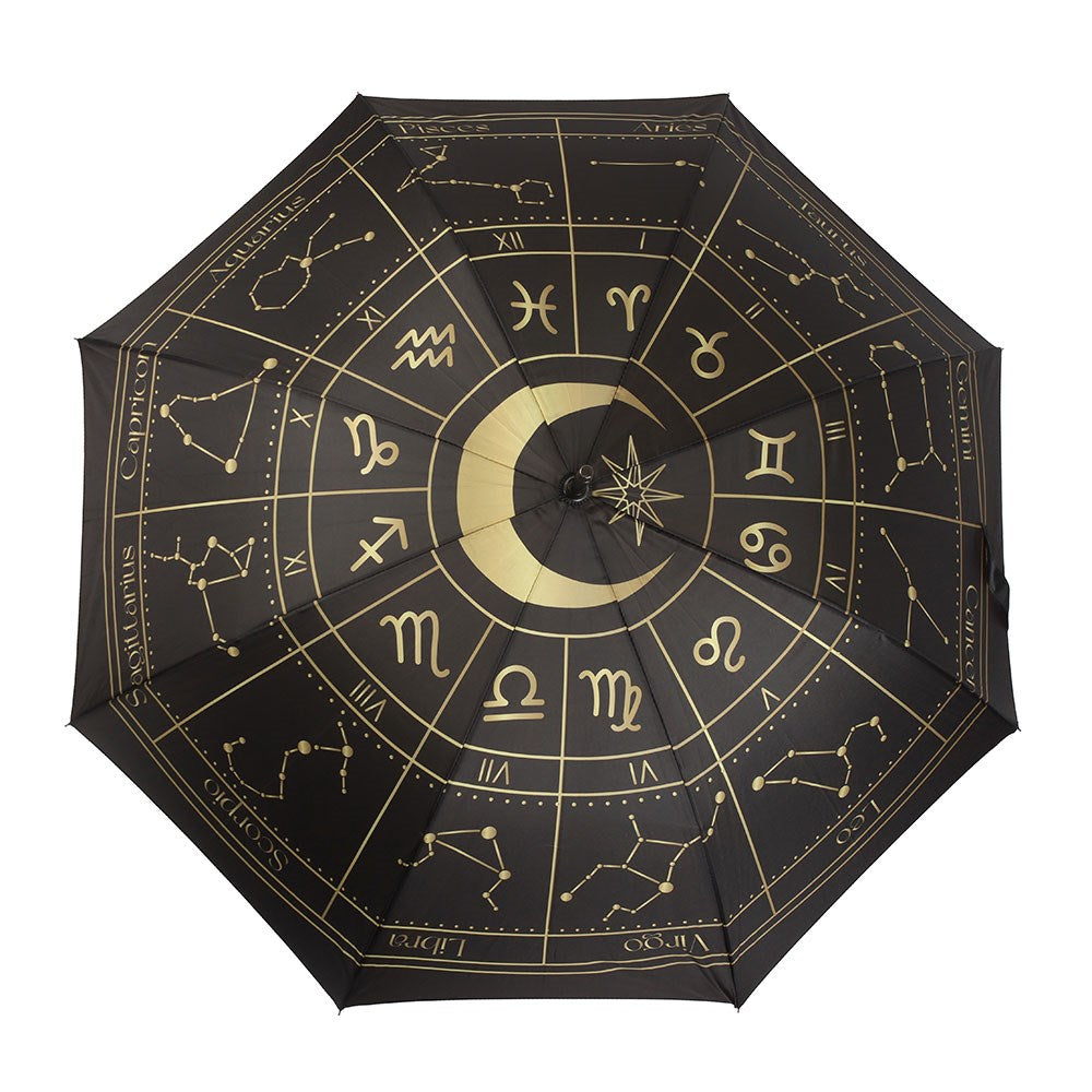 Rainy days need never be dull thanks to this beautiful black umbrella printed with a gold astrology wheel design. Stylish and unique, this brolly is sure to make an impact.